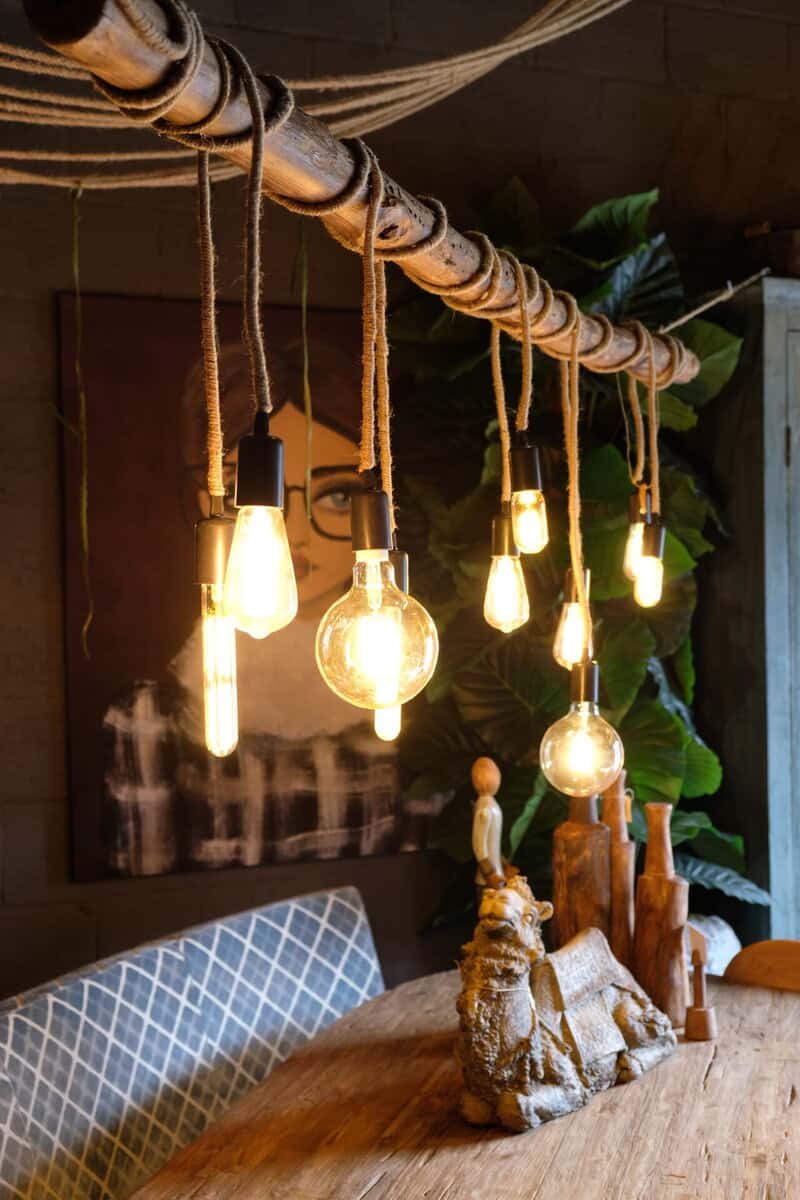 Uniek productNatuur en karakter aan je plafond: een robuuste boomstam met speelse touwen en warm licht. Een echte blikvanger met een stoer randje.
