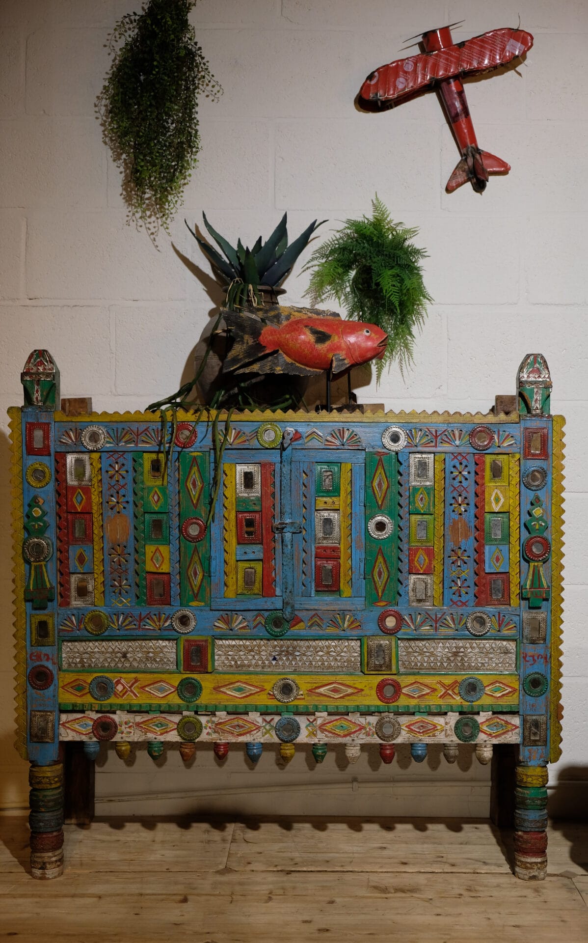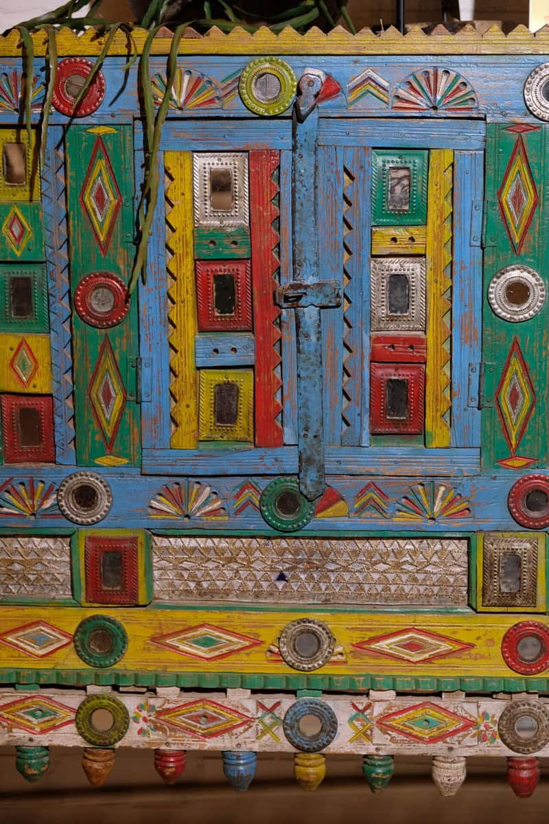 Kleurrijk, handgemaakt en vol karakter — dit unieke meubelstuk vertelt een verhaal.
