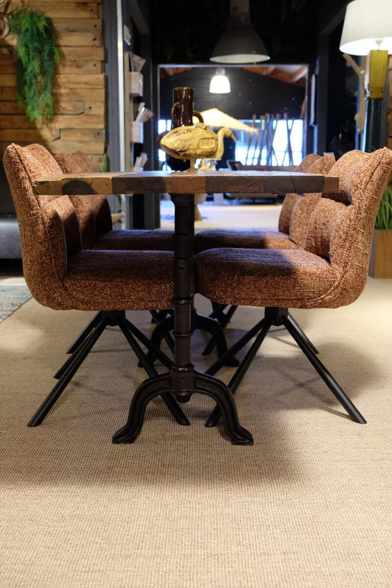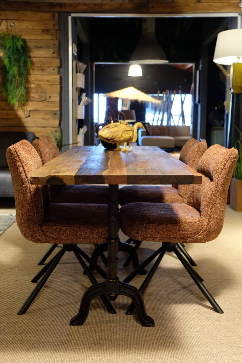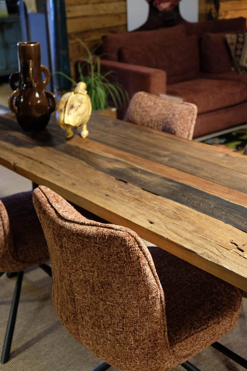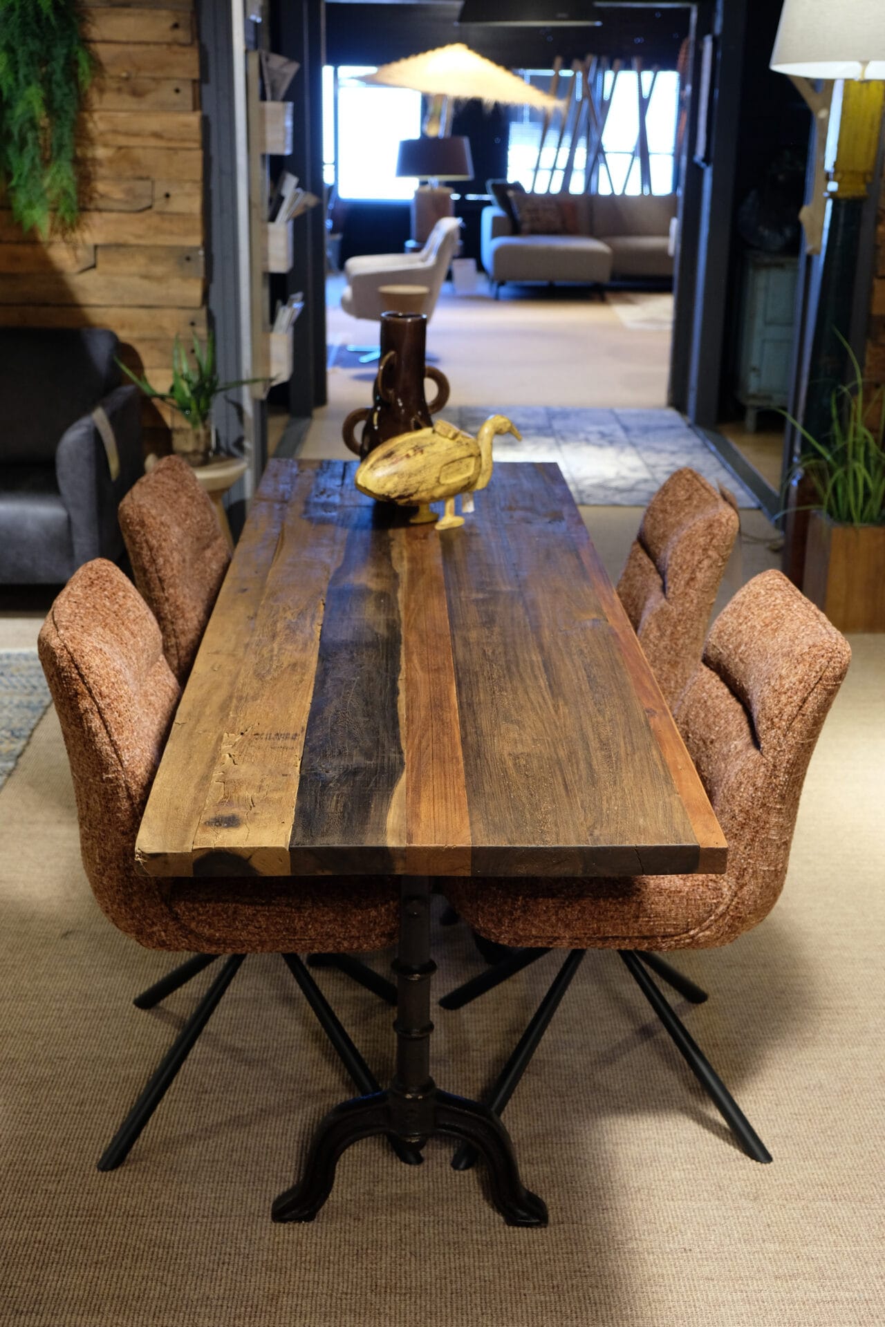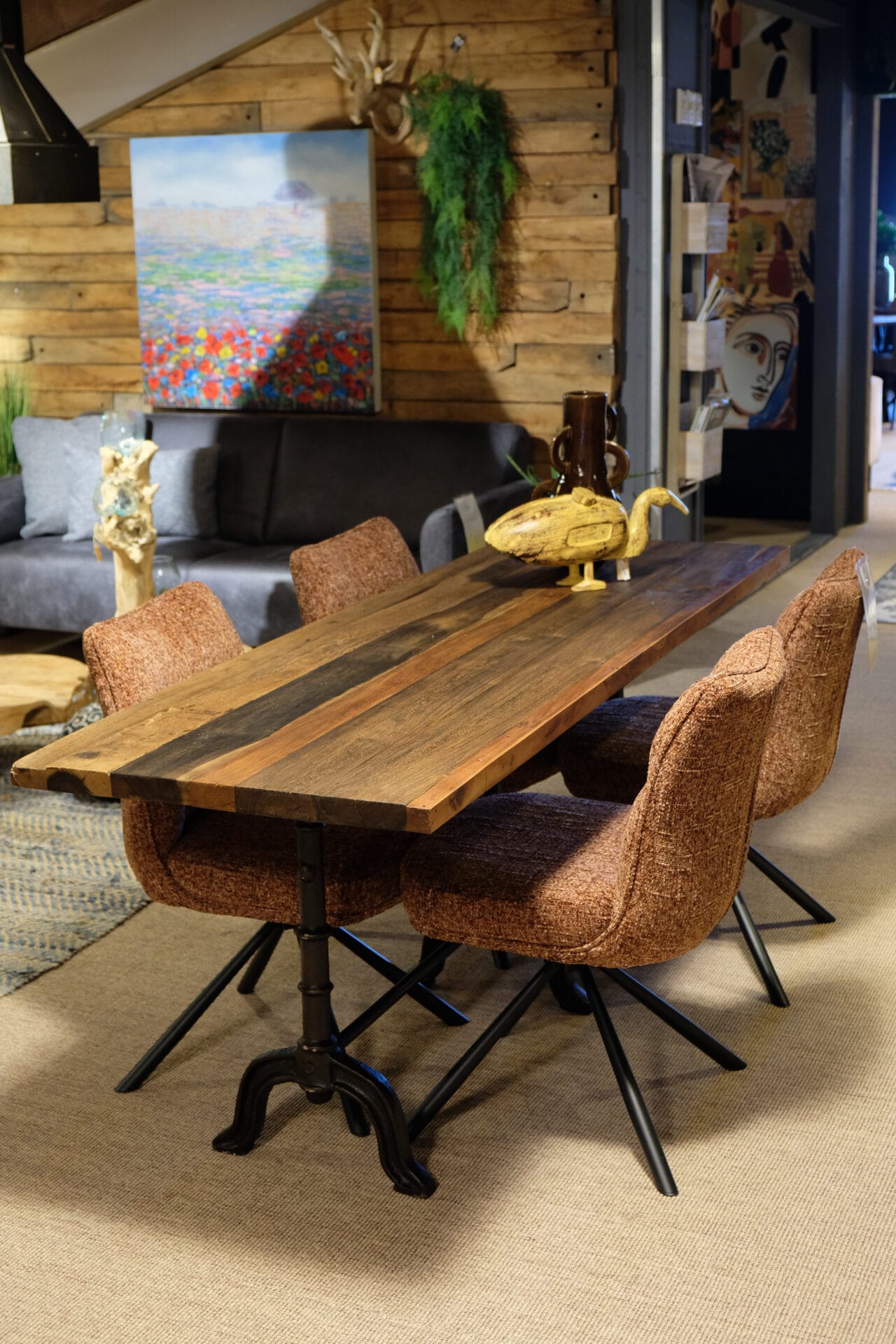 Een tafel die meteen de aandacht trekt. Stoer, warm en uniek – dé plek waar je samenkomt, eet en geniet. Deze houten eettafel brengt sfeer én karakter in huis.