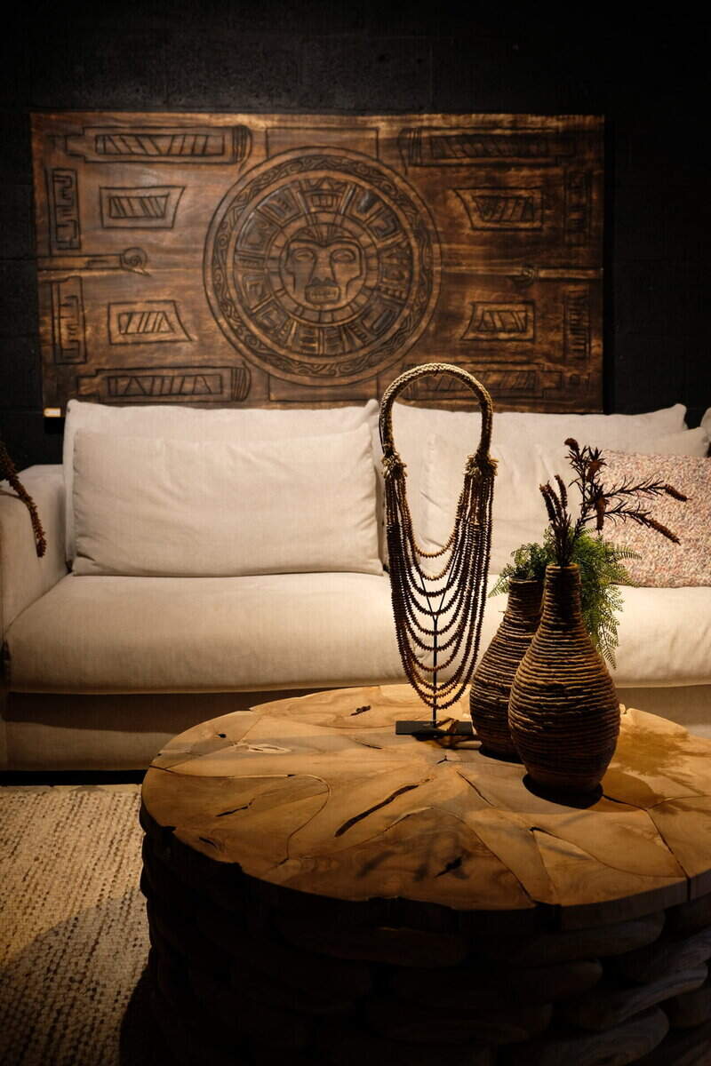 Met zijn rijke details en warme houtkleur voegt het een vleugje etnische elegantie toe.