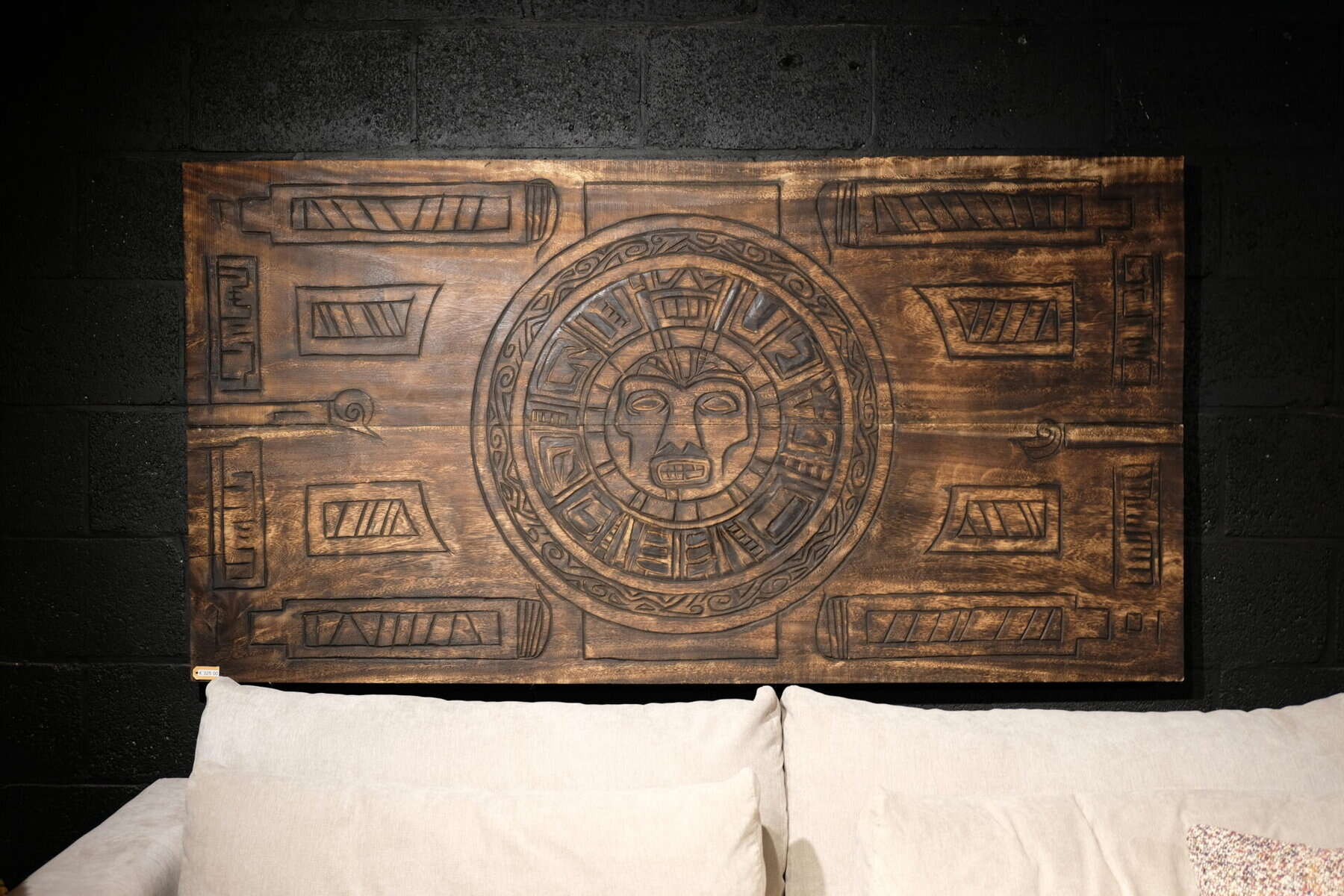 Uniek productDit handgesneden wandpaneel brengt een krachtig statement in je interieur.