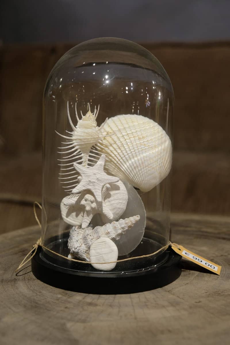 Uniek productBreng de schoonheid van de zee in huis met deze unieke stolp vol natuurlijke schelpen.