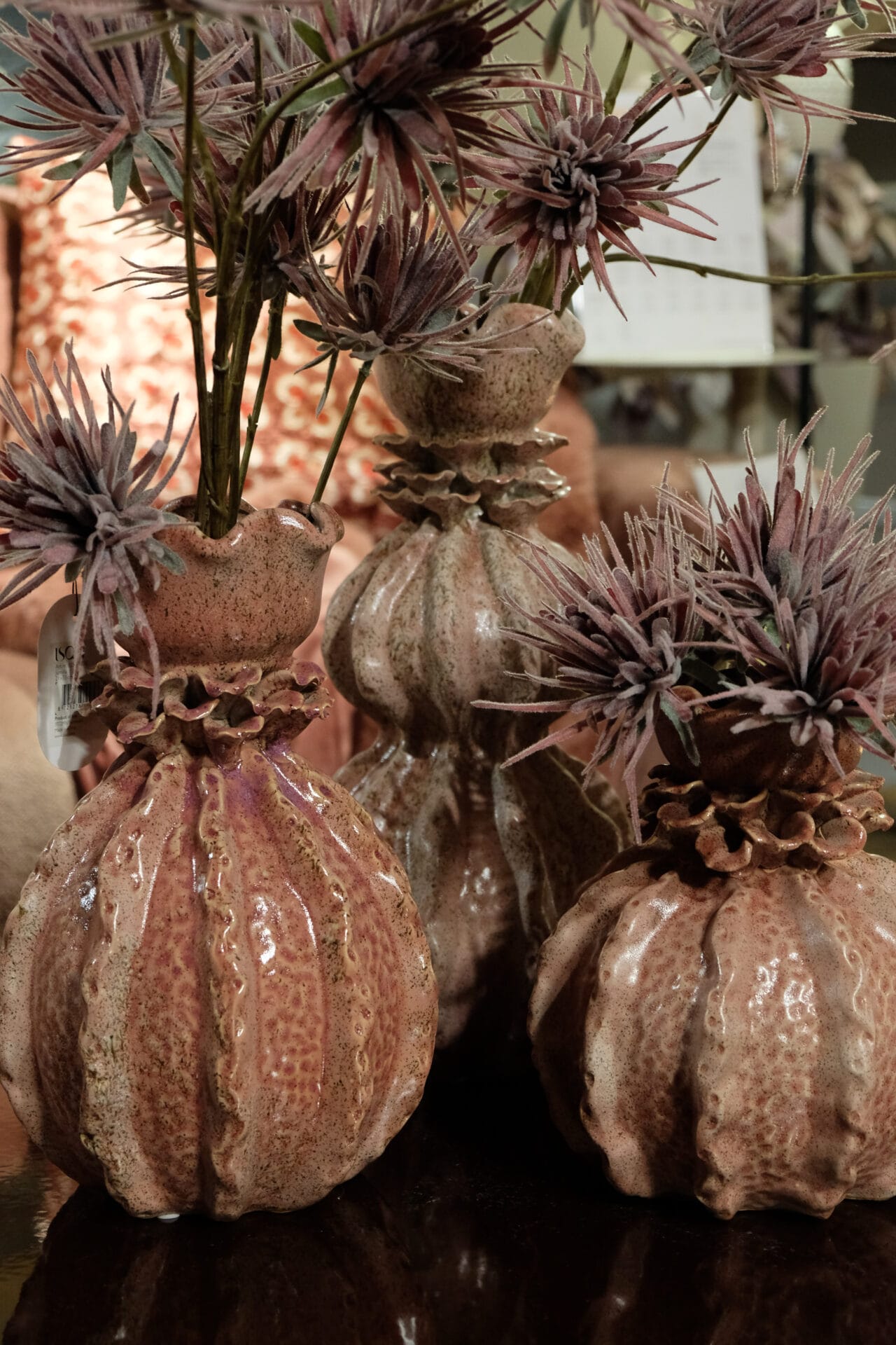 Unieke keramieken vaasjes met een warme, natuurlijke uitstraling. De organische vormen en zachte tinten maken ze echte sfeermakers in huis. Perfect om solo of als set te stylen met takken of kunstbloemen.