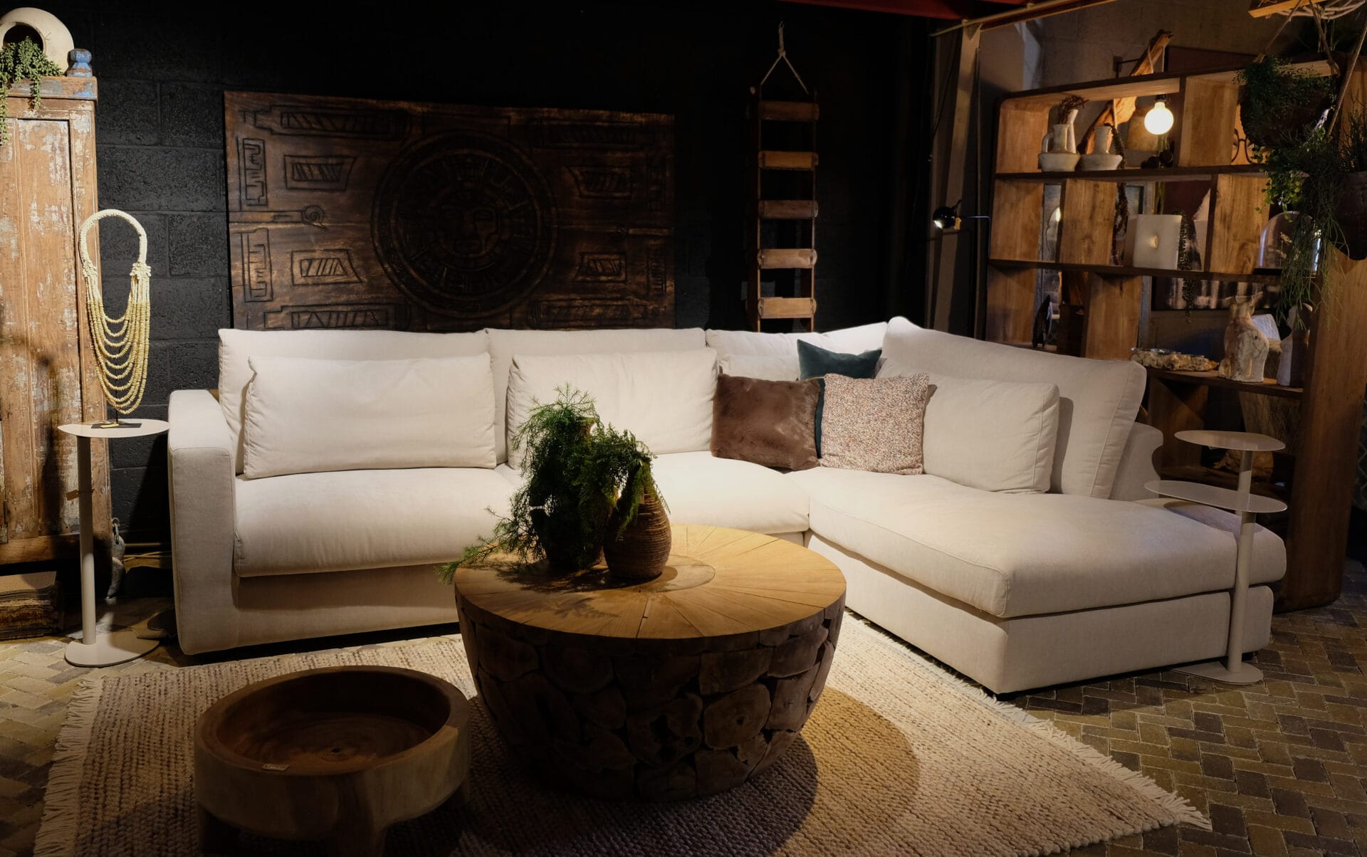 Onze royale hoekbank nodigt je uit om écht te genieten. Met zijn zachte, volle kussens en warme beige bekleding brengt hij comfort en klasse perfect in balans. Of je nu languit wilt liggen met een goed boek, of gezellig samen wilt borrelen — deze bank is het hart van je woonkamer.