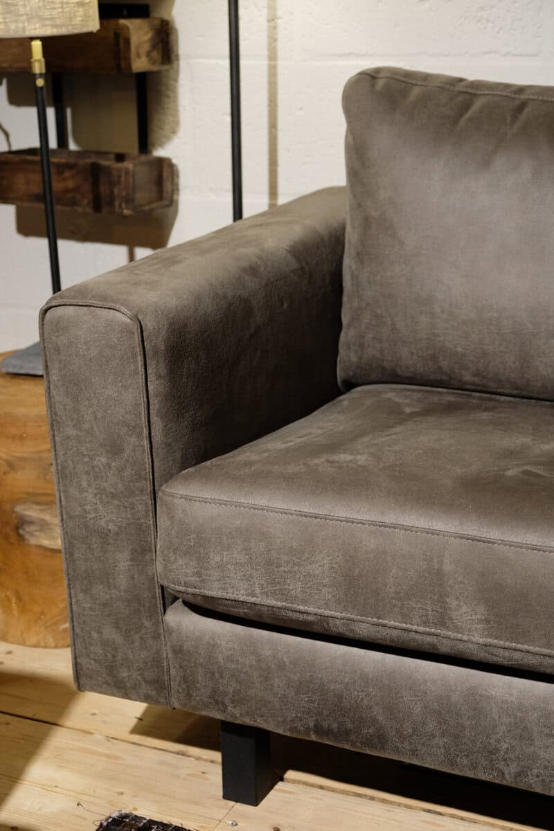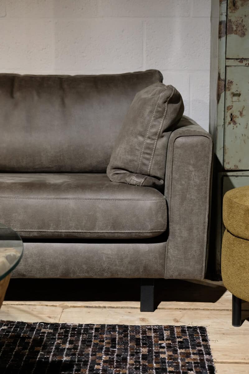 Comfort en karakter in één. Deze stijlvolle bank in warme taupetint biedt een luxe zitervaring en past perfect in zowel moderne als industriële interieurs. Een tijdloze toevoeging aan je woonkamer.