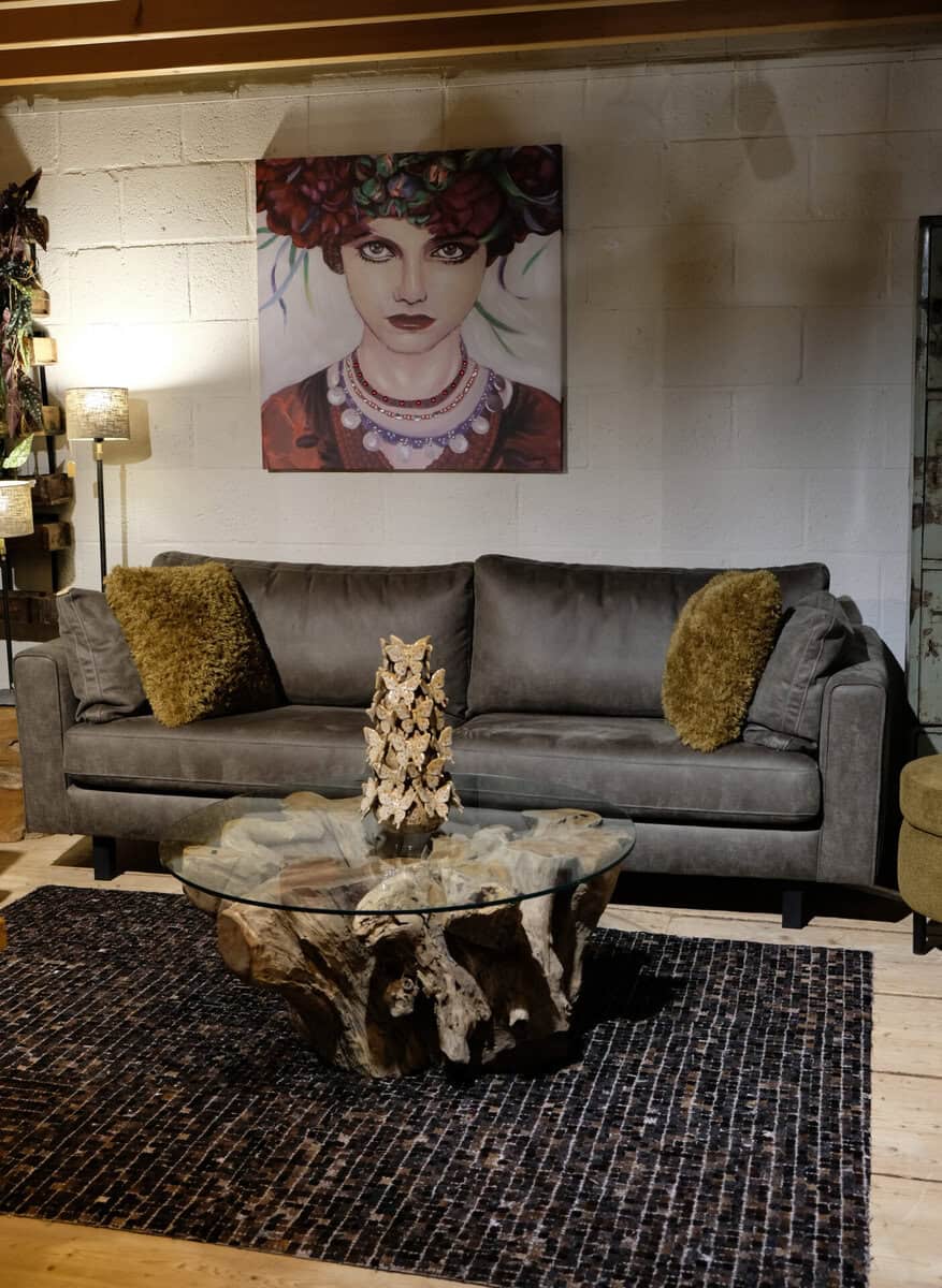Met zijn duurzame afwerking en stevige poten is deze bank niet alleen stijlvol, maar ook gemaakt voor langdurig gebruik. Een echte blikvanger die rust, sfeer en karakter toevoegt aan je woonruimte.