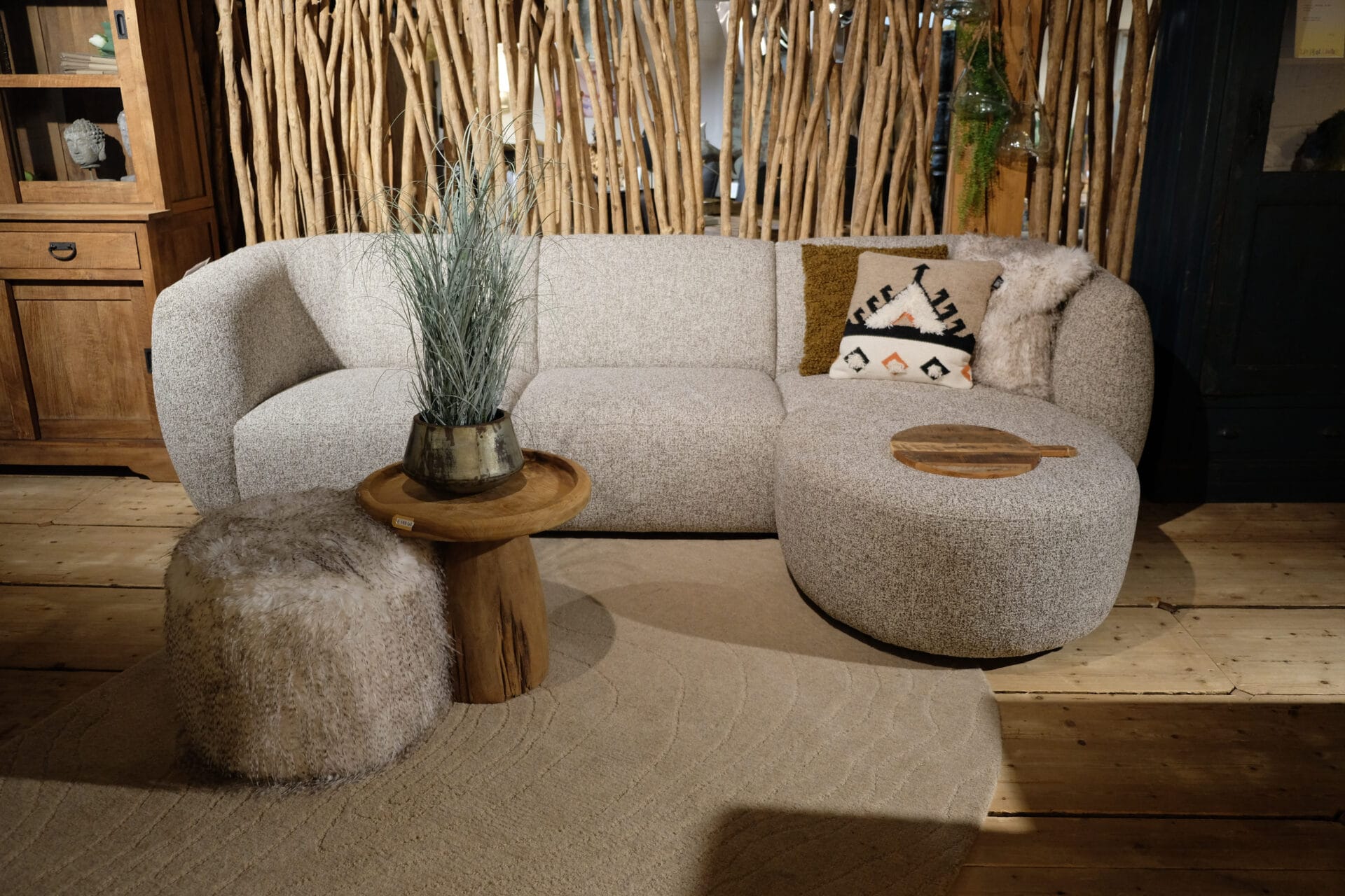 Wil je liever gemak? Kies dan voor één van onze standaardopstellingen, direct klaar om van te genieten. Voor extra comfort en een luxe uitstraling zijn er bovendien bijpassende sierkussens en poefs verkrijgbaar, uitgevoerd in dezelfde stof als de bank. Zo creëer je een harmonieuze, sfeervolle zithoek die helemaal van jou is.
